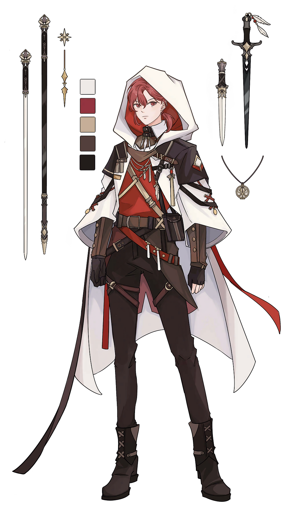 紅髮紅瞳,髮長至肩,會綁起一搓小狼尾。